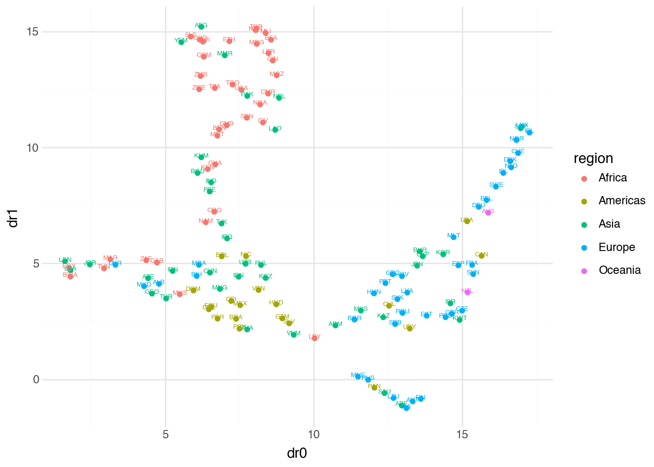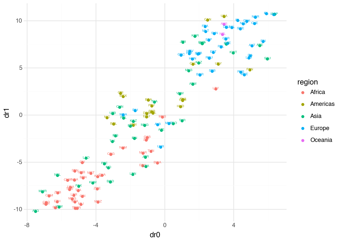 + geom_text(aes(color="region", label="iso"), nudge_y=0.05, size=5)