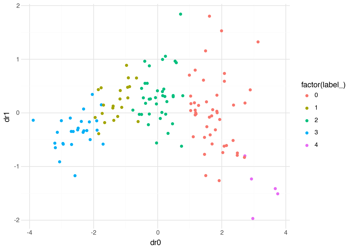 The predictions show the most likely region for each country based solely on its principal component scores. This demonstrates a complete pipeline: we start with four economic and social indicators, compress them to two dimensions that capture the most important variation, and then use those dimensions to predict a categorical outcome. The dimensionality reduction simplifies the modeling problem while (ideally) retaining the information most relevant for prediction.