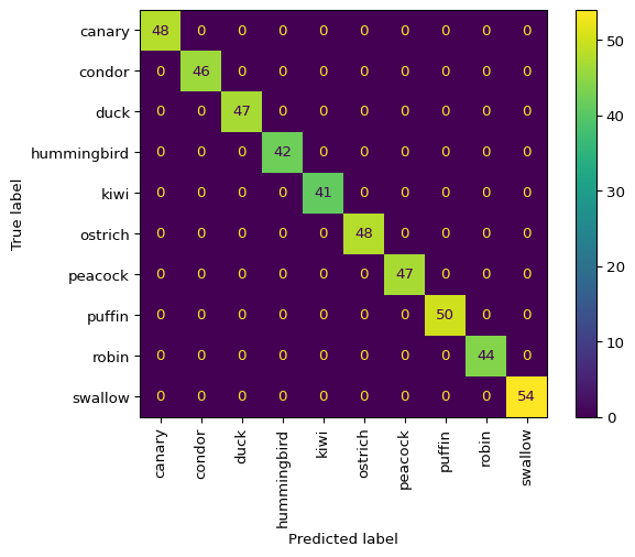 The confusion matrix shows us which species are most often confused with each other. This can provide insight into the structure of the problem and potentially guide data collection if we wanted to improve performance further. In this case we see that the model does not make a single error on our dataset!